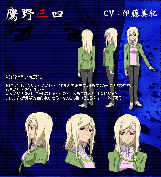 鷹野三四wiki 鷹野三四 鷹野三四 Cv 伊藤美紀 出自 寒蟬鳴泣之時 寒蟬 Kdnbe